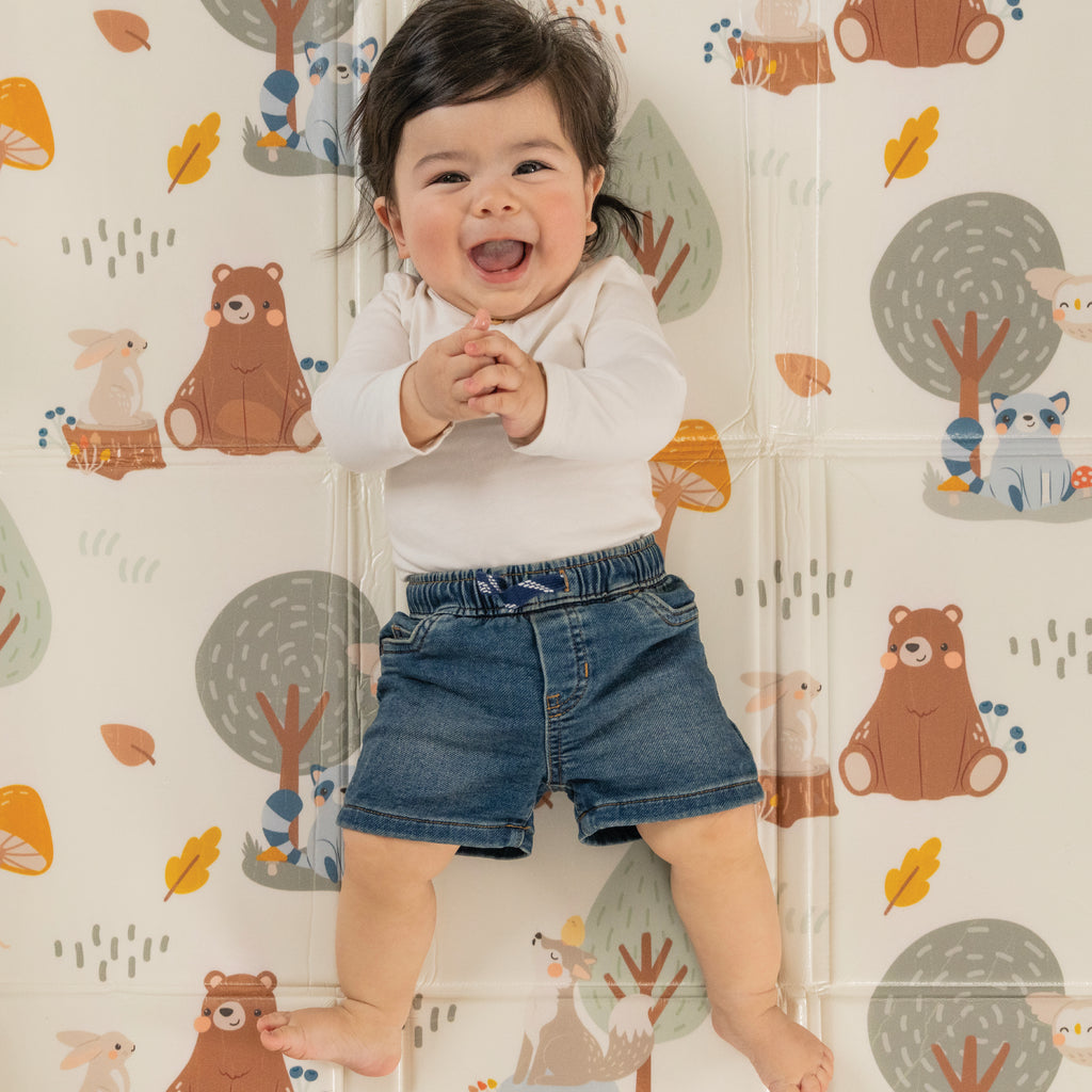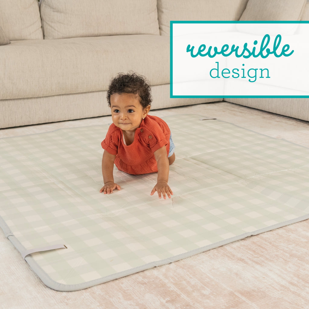 - Soft, cushioned surface gives baby a place for tummy time, crawling and playing