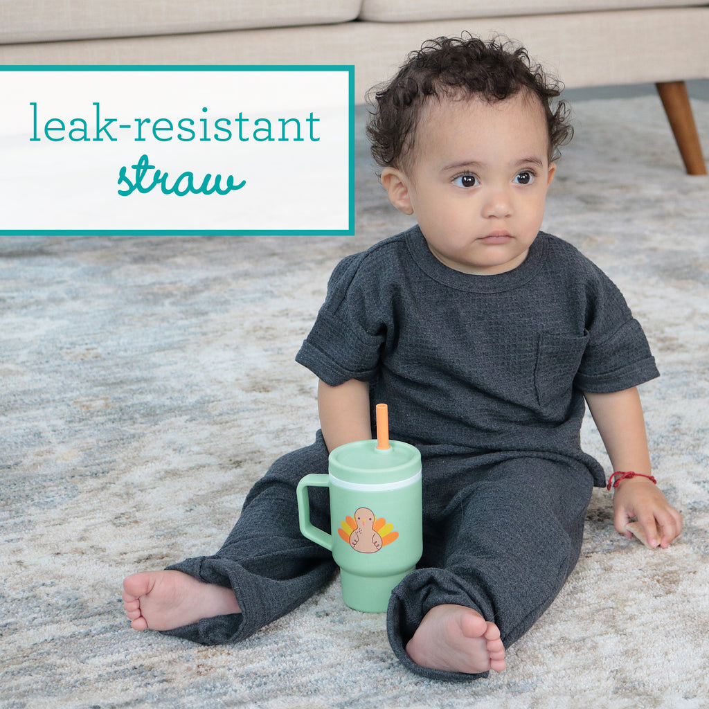 Meet the Infantino My 1st Tumbler – the perfect companion for your little one’s hydration! This 10oz tumbler is designed for babies learning to sip independently. This lightweight, BPA-free reusable solid cup is perfectly sized for little hands to grip. The two-piece, leak-resistant straw features a smart valve for smooth liquid flow while preventing spills, even when flipped upside down. With a soft, no-pull-out silicone tip, it’s gentle and ideal for those first sips.