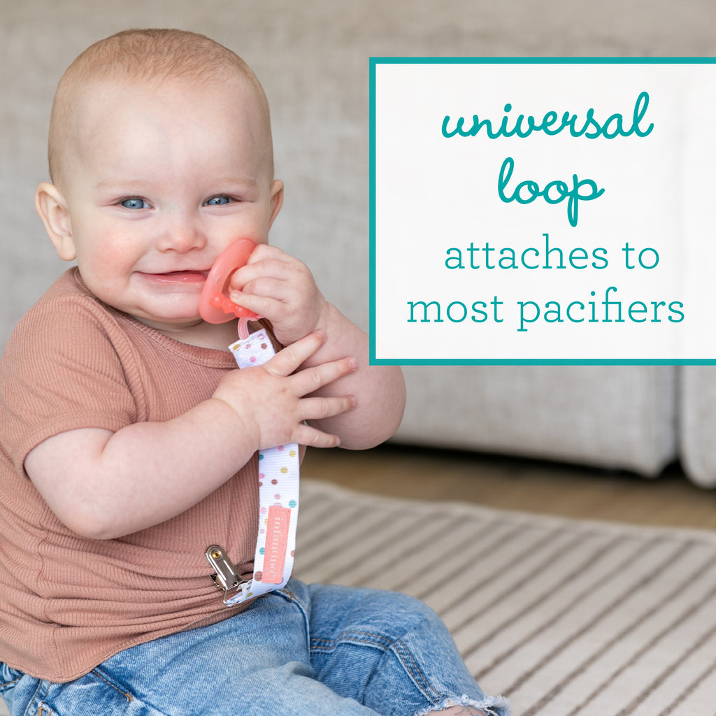 • Universal loop attaches to most pacifiers