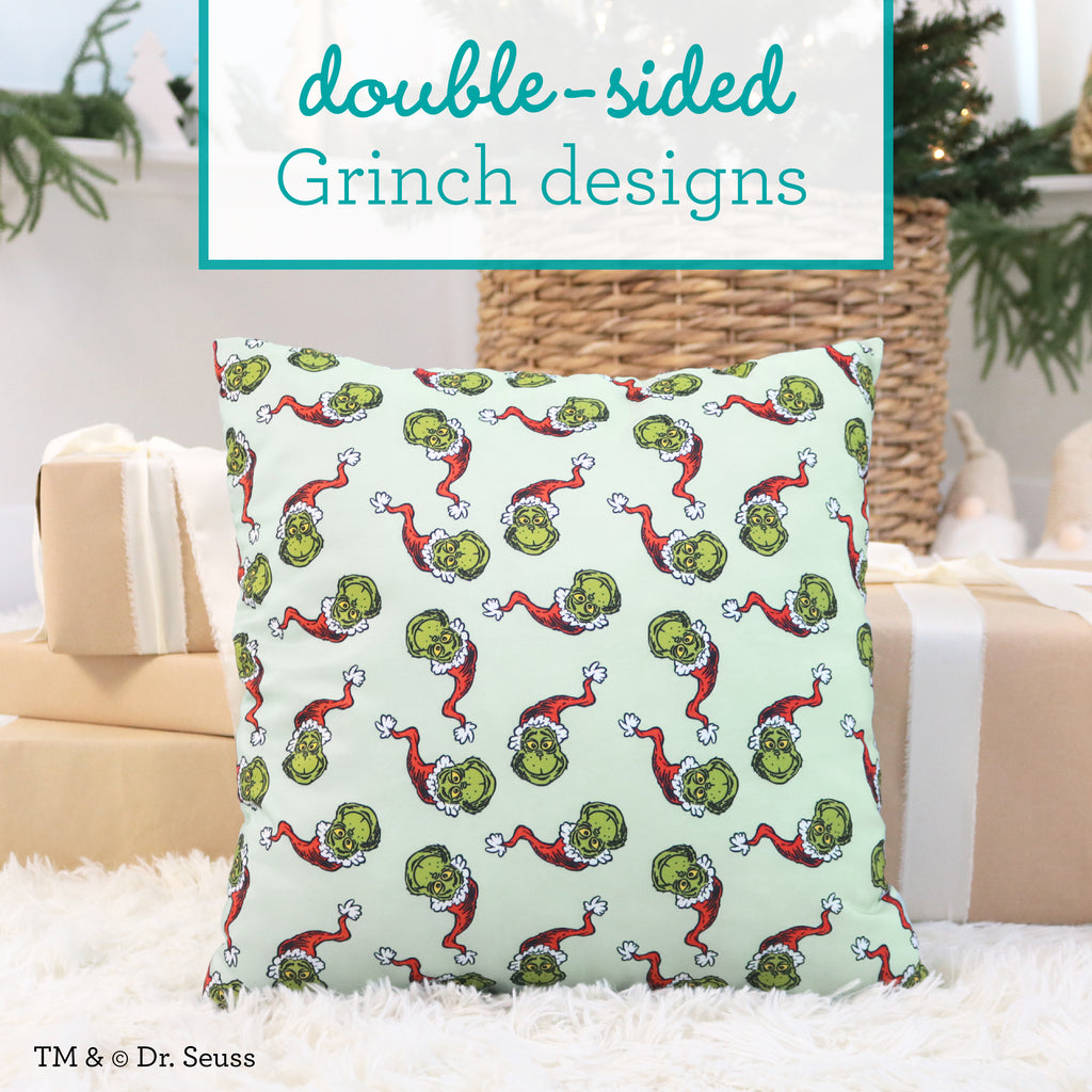 - Reverse side shows a playful Grinch Santa hat pattern