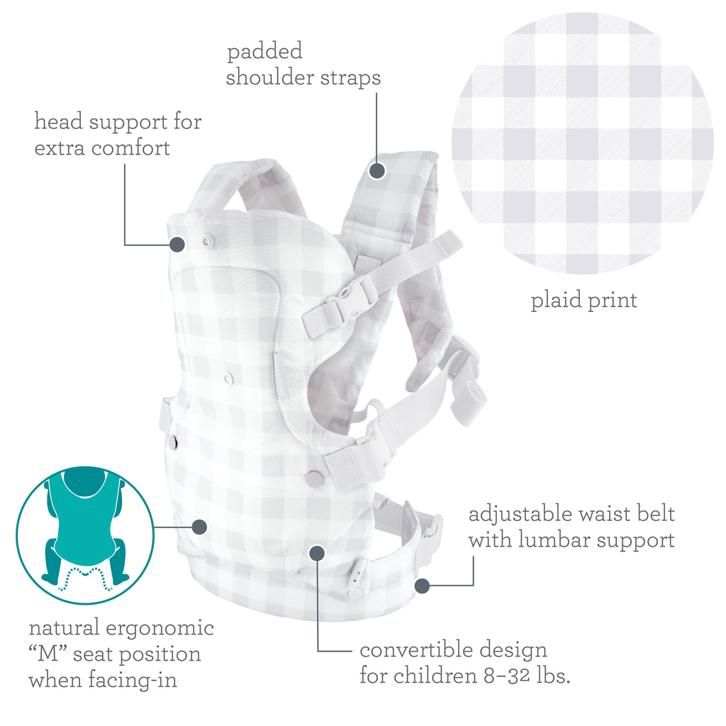 Convertible design for newborns and toddlers weighing between 8-32 pounds