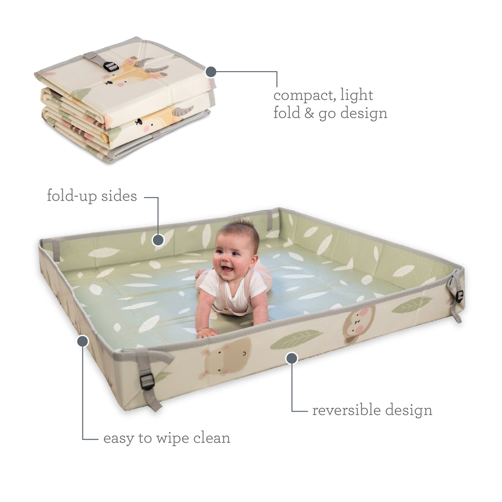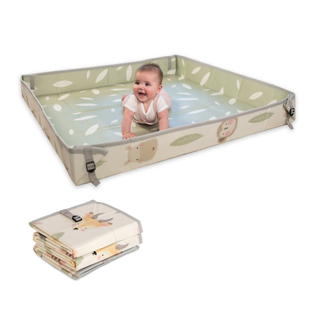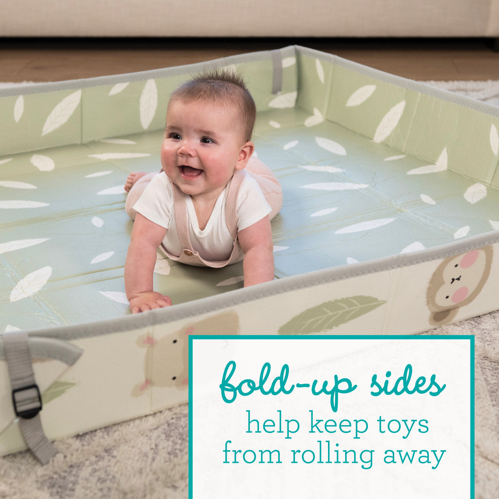 The Infantino Foldable Soft Foam Mat is a must-have for any parent looking to give their baby an enjoyable and safe play space. This soft yet grippy foam mat creates a perfect spot for your little one to play and practice new skills such as rolling, crawling, and sitting up. Not only is the mat comfortable and practical, but its unique fold-up sides also help keep roll-away toys from escaping. This foam mat provides a stylish look with its double-sided prints. The mat is also incredibly easy to move or store away. Thanks to its lightweight fold-and-go design, you can take this mat with you, so you always have a playmat nearby for your baby. With all these wonderful features, the Infantino Foldable Soft Foam Mat is the best choice for parents who want to create the perfect play space for their baby.