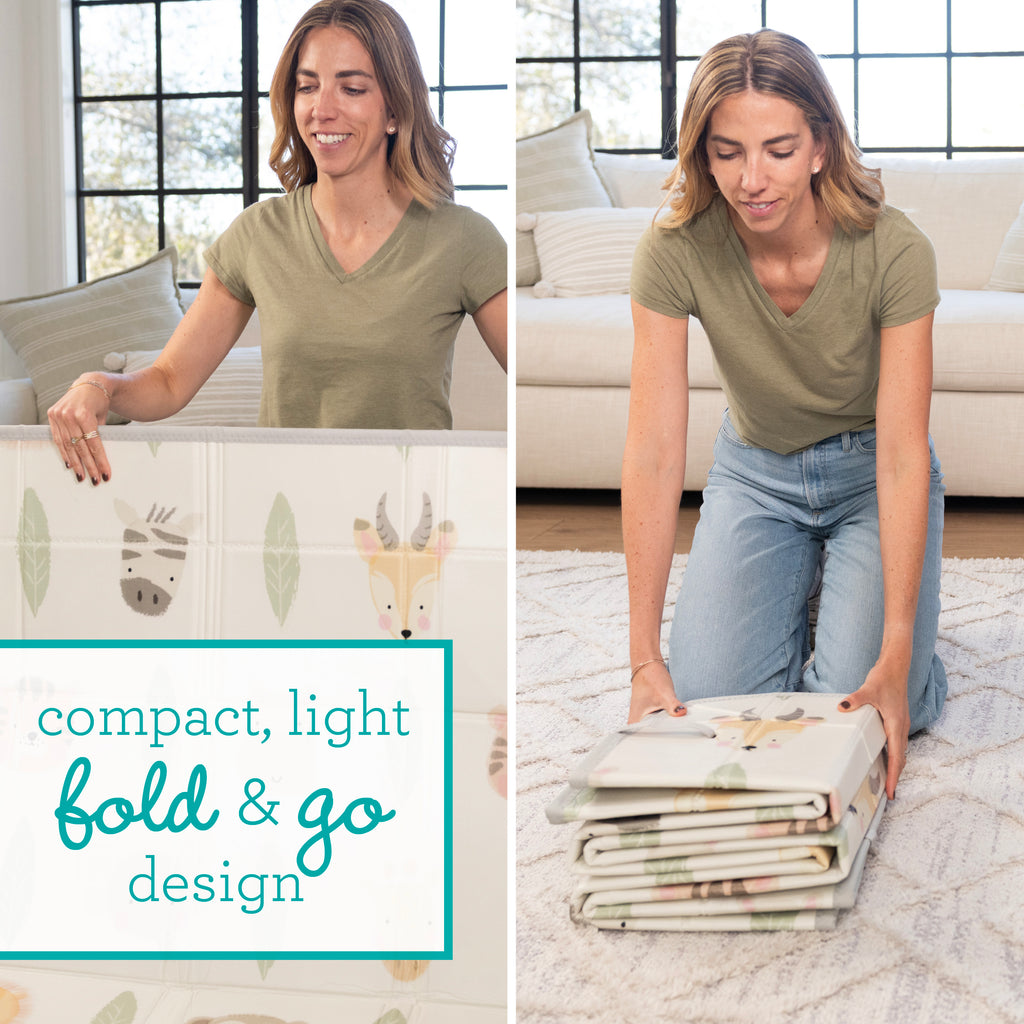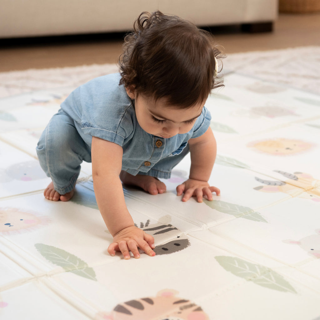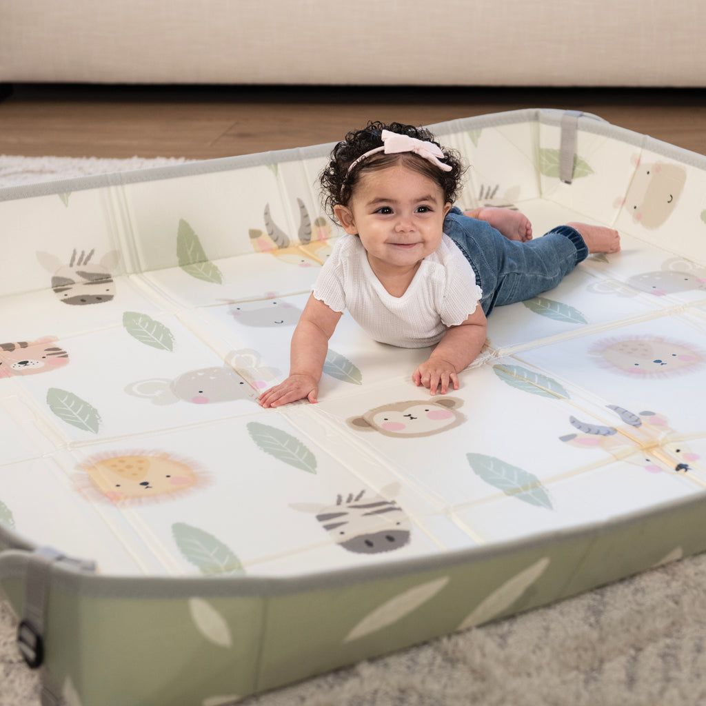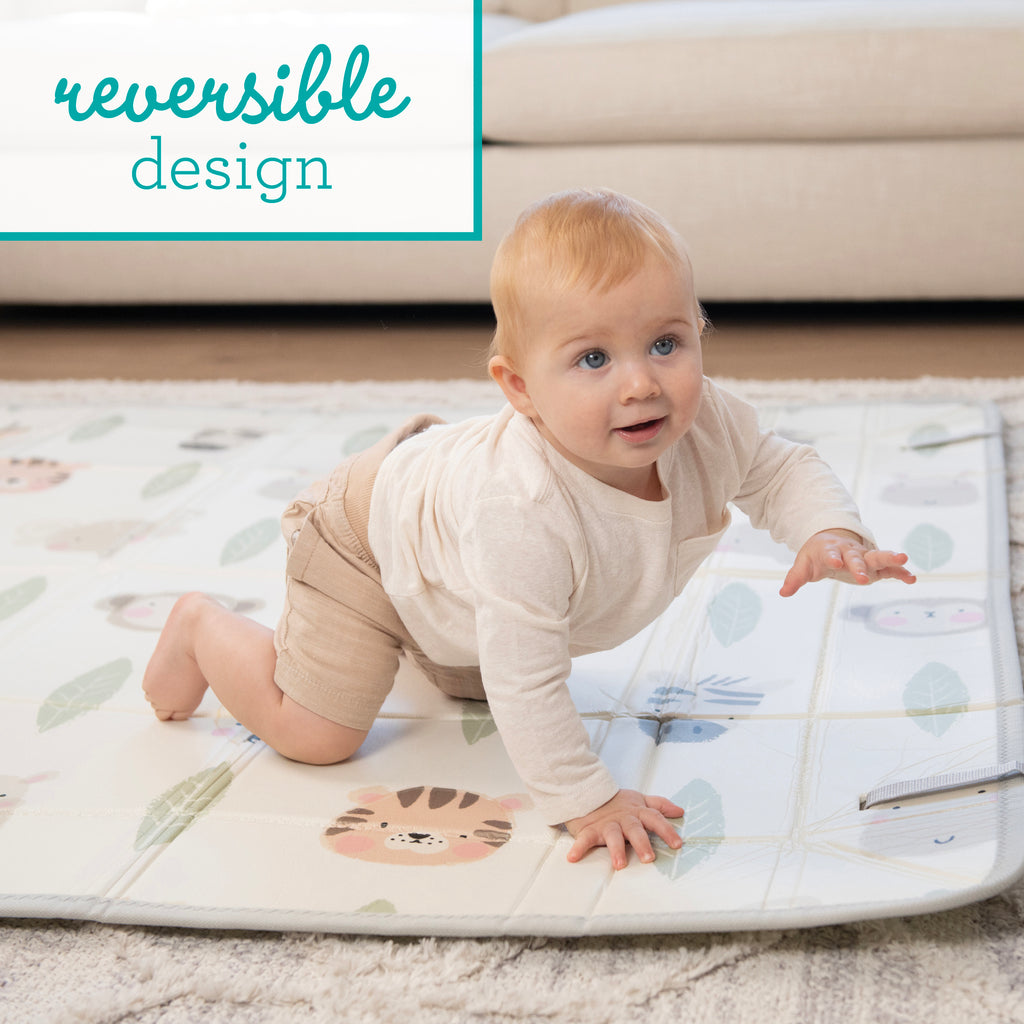 The Infantino Foldable Soft Foam Mat is a must-have for any parent looking to give their baby an enjoyable and safe play space. This soft yet grippy foam mat creates a perfect spot for your little one to play and practice new skills such as rolling, crawling, and sitting up. Not only is the mat comfortable and practical, but its unique fold-up sides also help keep roll-away toys from escaping. This foam mat provides a stylish look with its double-sided prints. The mat is also incredibly easy to move or store away. Thanks to its lightweight fold-and-go design, you can take this mat with you, so you always have a playmat nearby for your baby. With all these wonderful features, the Infantino Foldable Soft Foam Mat is the best choice for parents who want to create the perfect play space for their baby.