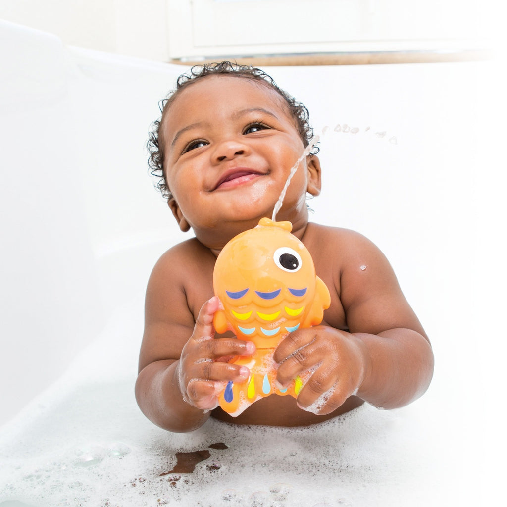 This extra-large squirting fish is perfect for spraying, squirting, and splashing in the tub. When bath time is done, pull apart the squirter's two halves for easy drying and cleaning. Pull-apart design prevents entrapped water and protects against mold and mildew.