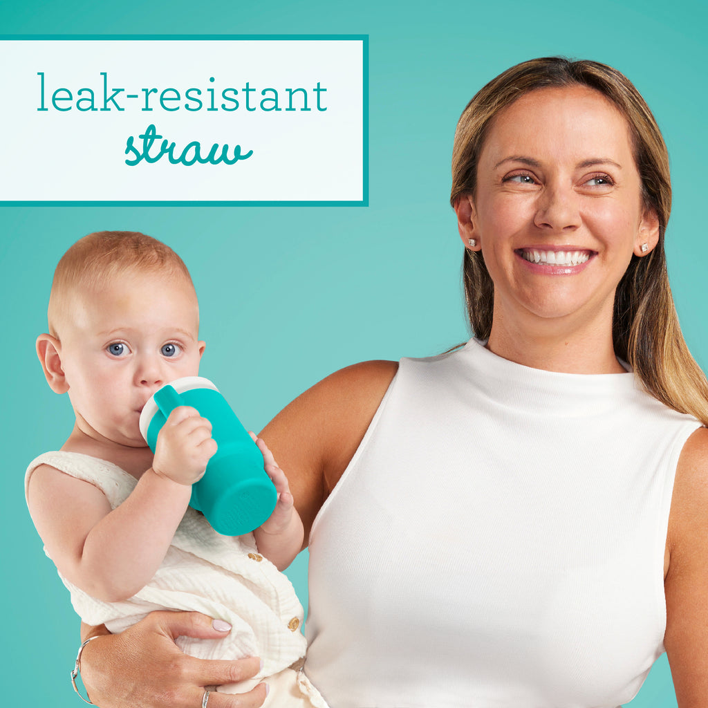 • Leak-resistant straw with a soft silicone tip and smart valve