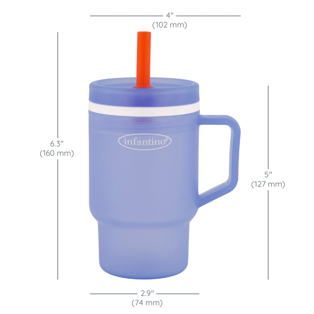 Meet the Infantino My 1st Tumbler – the perfect companion for your little one’s hydration! This 10oz tumbler is designed for babies learning to sip independently. This lightweight, BPA-free reusable solid cup is perfectly sized for little hands to grip. The two-piece, leak-resistant straw features a smart valve for smooth liquid flow while preventing spills, even when flipped upside down. With a soft, no-pull-out silicone tip, it’s gentle and ideal for those first sips.