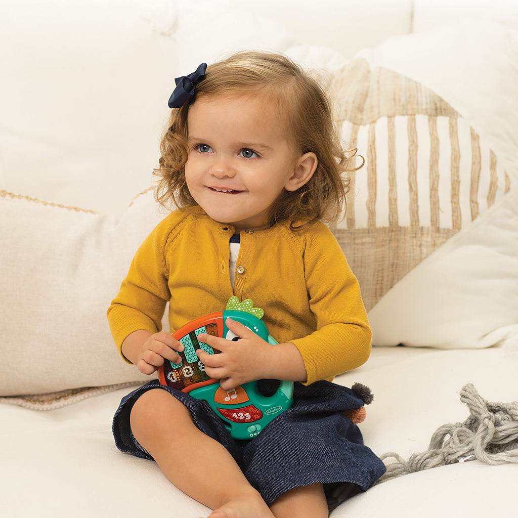 Babies will go gaga for the easy to hold, musical friend. This playful toucan has light-up piano keys that introduce little learners to music and numbers. Features 9 songs, 18 spoken words and phrases plus 13 fun sound effects. Switch the head feather switch to mode two for older toddlers to unlock playful quizzes. The tail-feather handle is easy for little hands to grasp. Ideal of ages 6 - 36 months.