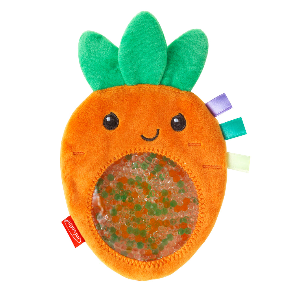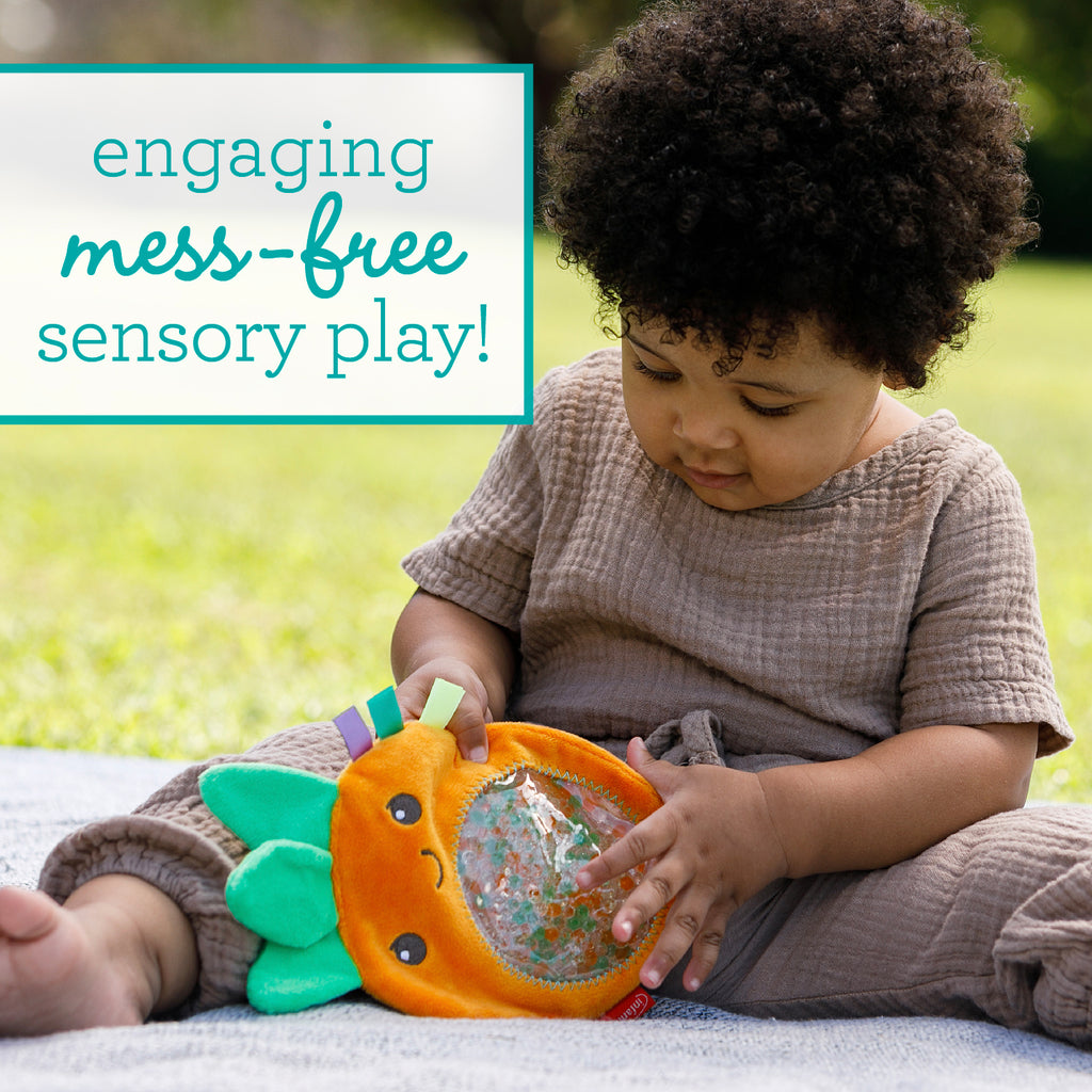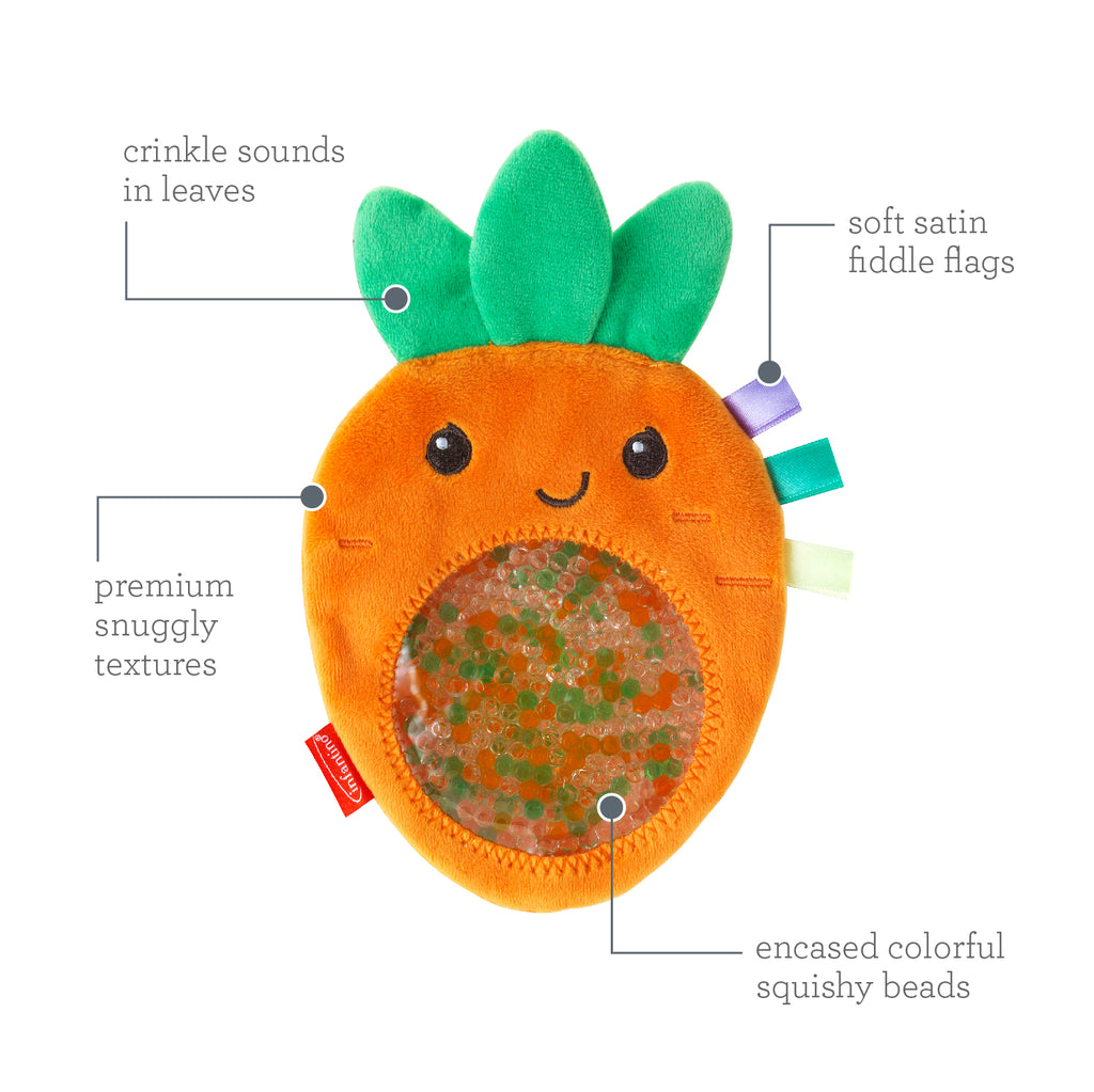 Babies will go gaga for this irresistible, mess-free Seek & Squish Sensory Pal. There's no fun like squishy and squeezing the carrot’s belly. Babies and toddlers alike will find joy in playing with this sensory exciting pal that encourages fine motor skills. They will enjoy exploring encased colorful squishy beads, soft fiddle flags, engaging crinkly leaves, and premium snuggly textures. The Seek & Squish by Infantino makes the perfect basket stuffer this holiday!