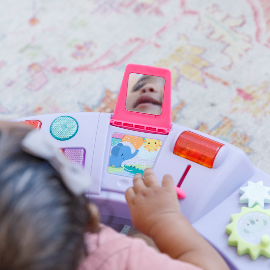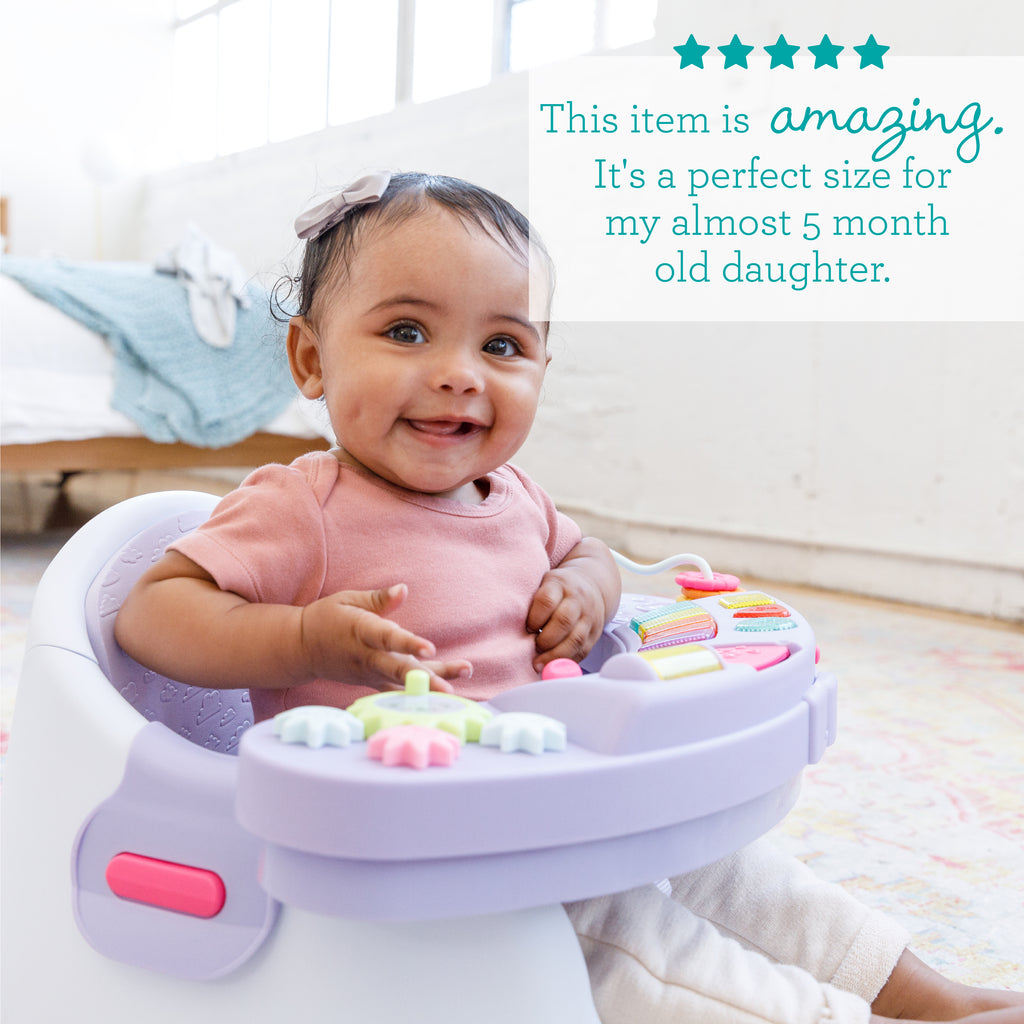 • 3-in-1: Interactive play space, snack seat, and table booster