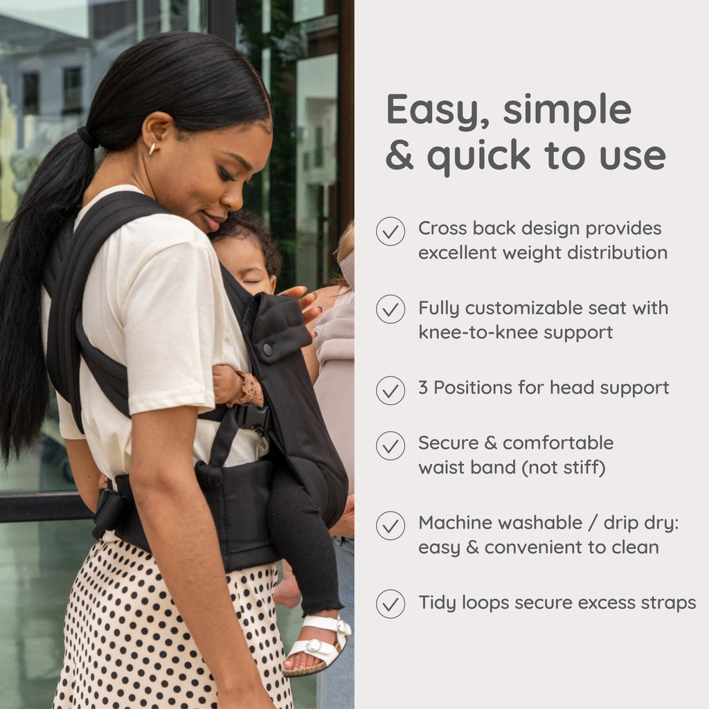 - Hands-free design keeps baby close for comfort and bonding while you move