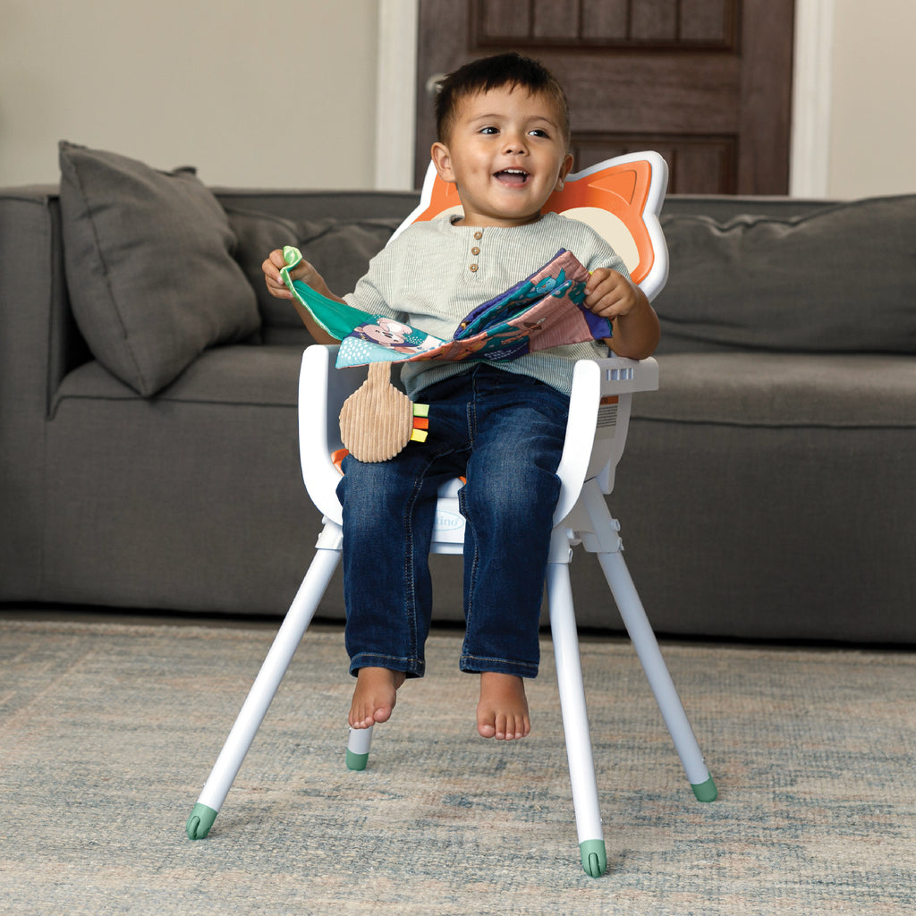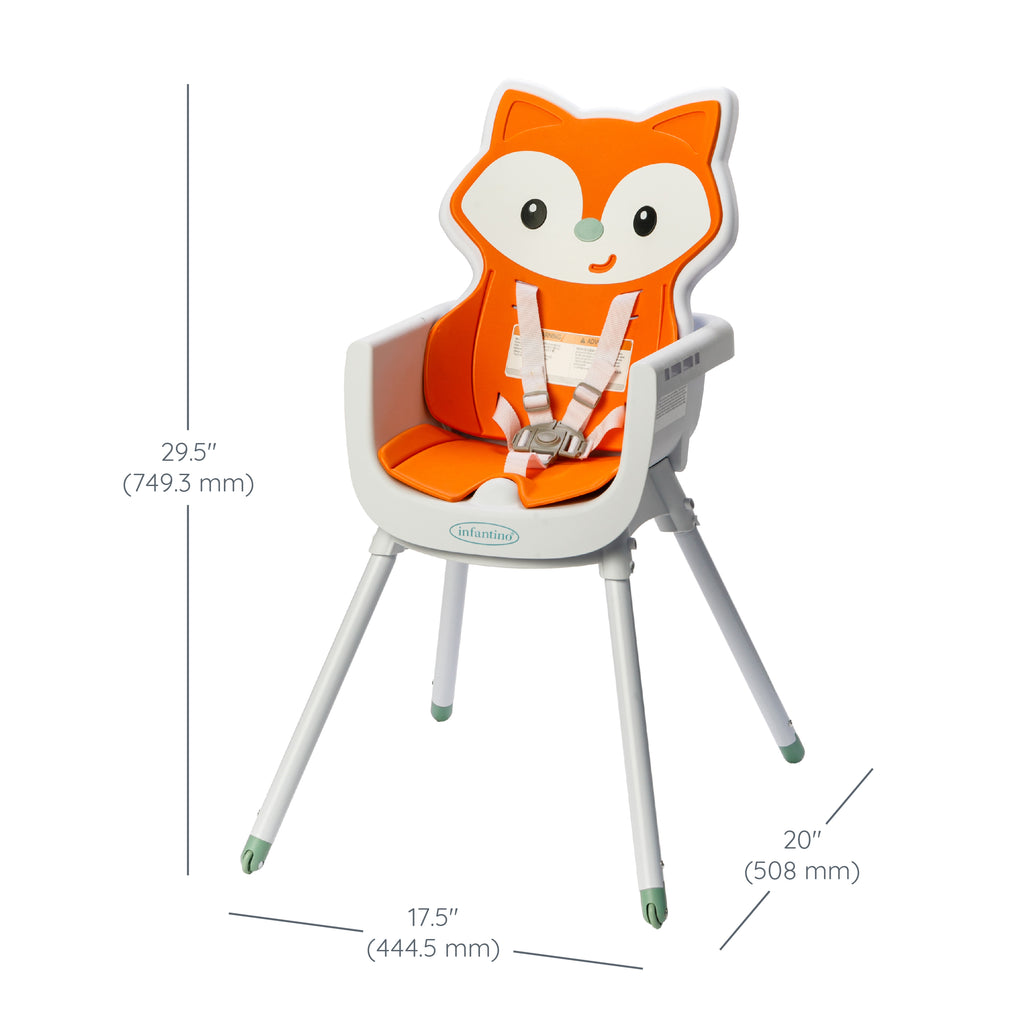This 4-in-1 high chair by Infantino transforms into a space saver, booster and toddler chair. Features a dishwasher safe multi-functional meal mat and easy release removable food tray. Food tray and seat back are adjustable for ideal positioning from tiny to toddler. For unisex babies weighing up to 33 lb. Cushioned, low-density foam padding is soft for baby, and easy to clean for parents.