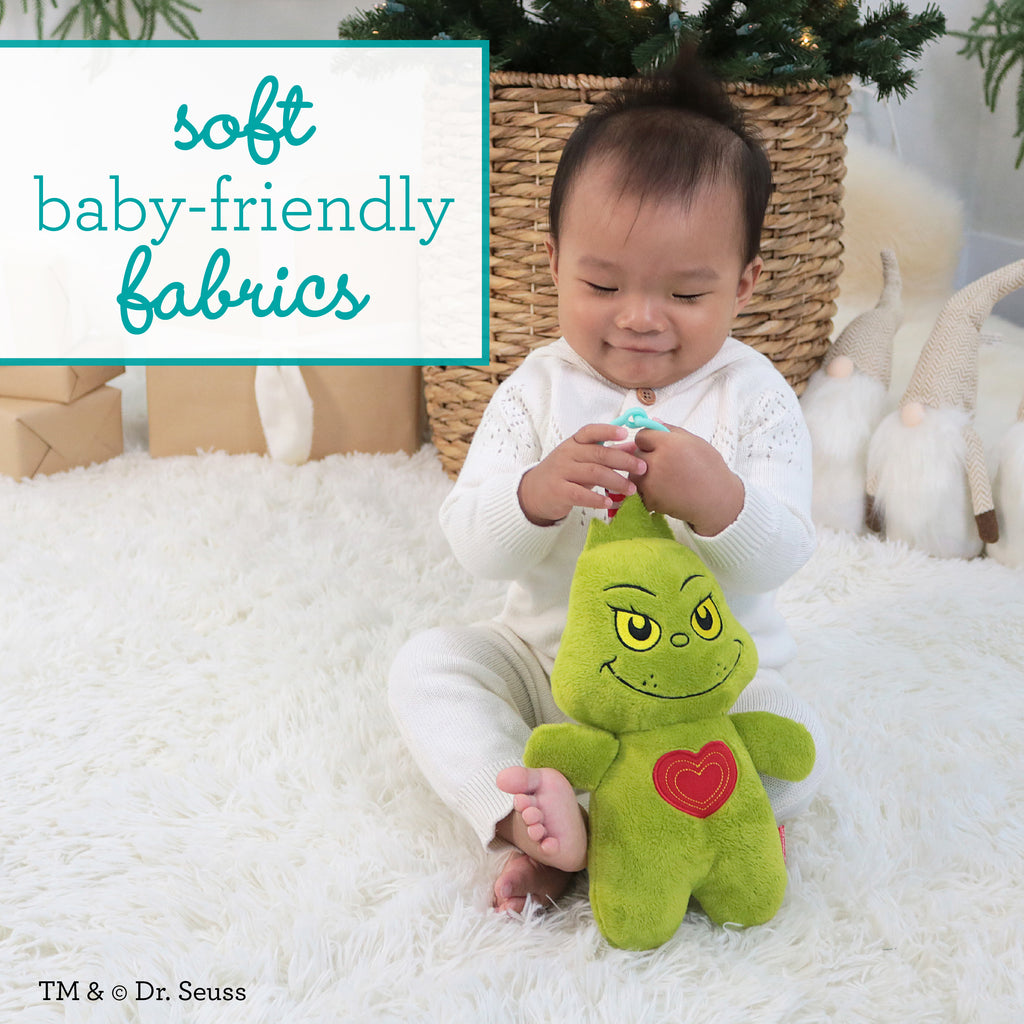 - Built-in link attaches to strollers, play gyms or diaper bags