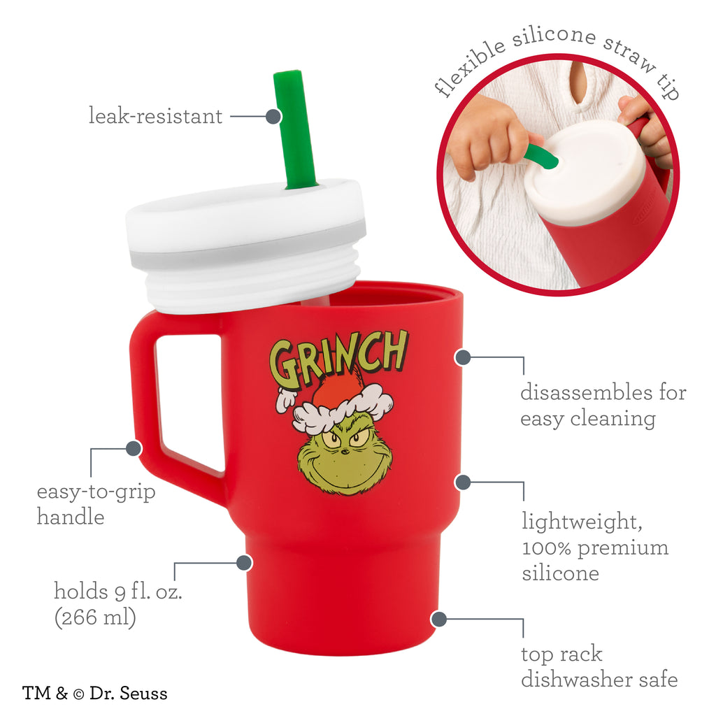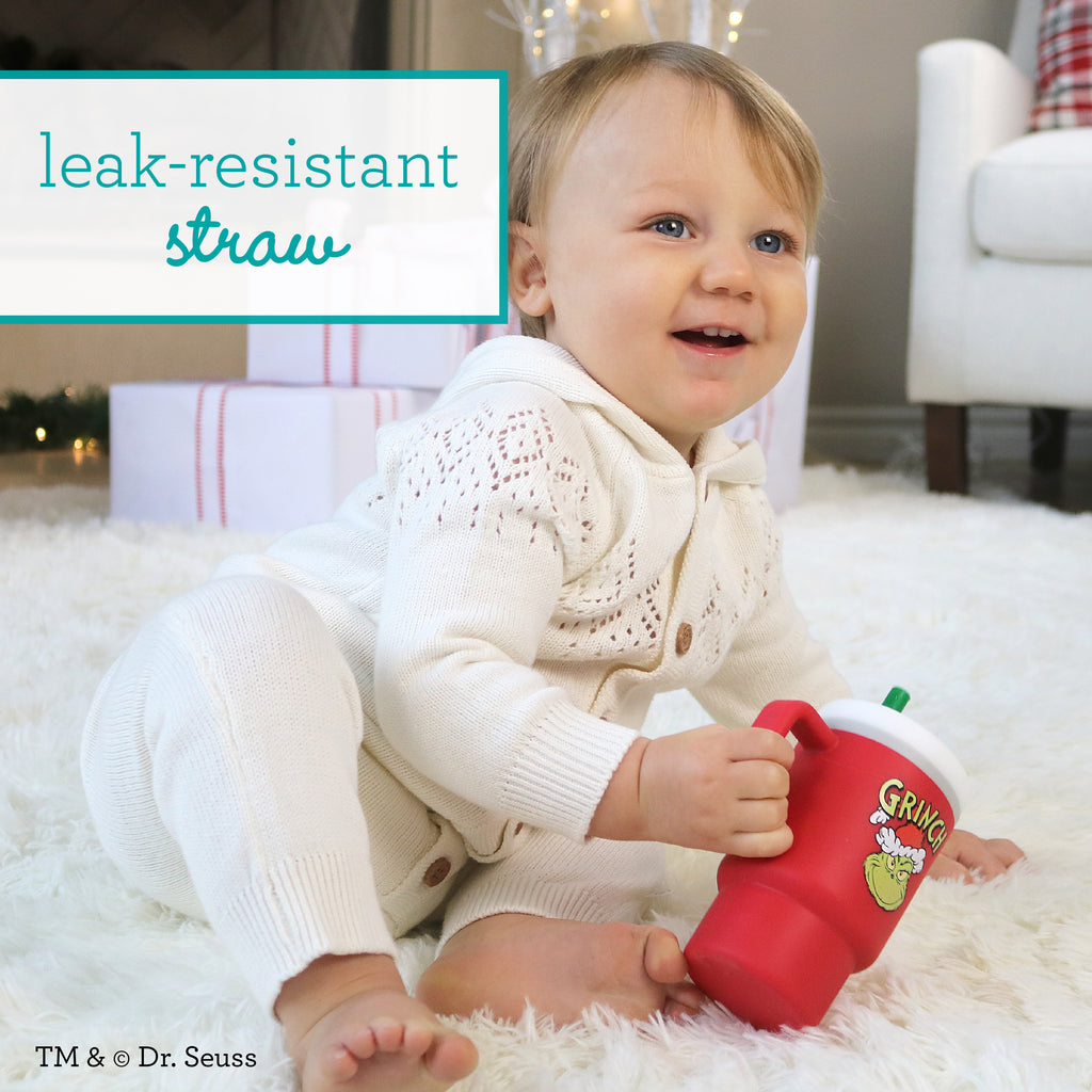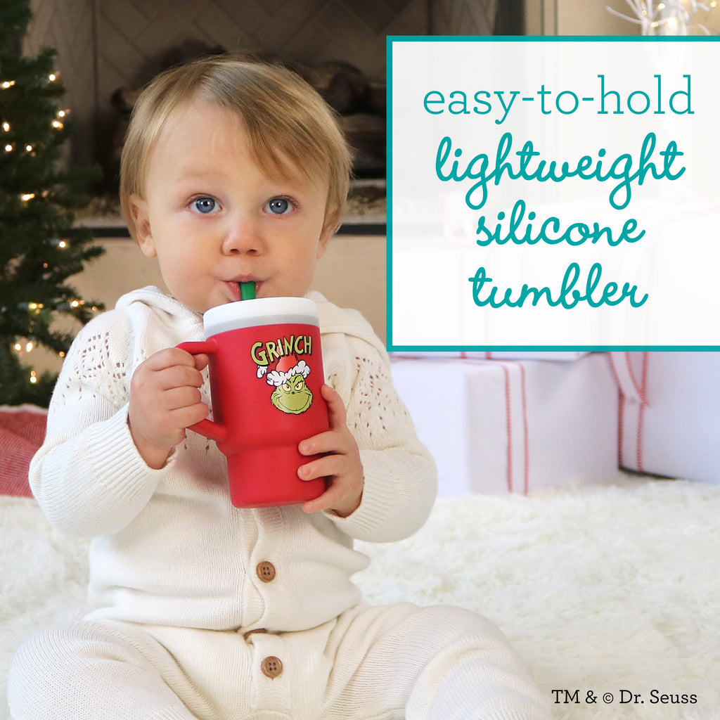 Introducing the Infantino My 1st Tumbler, now available in a cheerful Grinch design, just in time for the festive holiday season! This joyful 9oz tumbler is perfect for little Whos learning to drink from a cup. Made from lightweight, high-quality silicone, the tumbler is sized to fit little hands eager to embrace the season's wonders. The expertly designed valve in the leak-resistant straw allows for a smooth, no-spill experience, even when flipped! The no-pull-out straw boasts a soft silicone tip, making it comfortable for little Whos to sip. With a convenient handle, it’s easy to grab on the go and simple to clean, either in the dishwasher or by hand with warm, soapy water. Celebrate your little Who's first Grinchmas with the Infantino My 1st Tumbler – Grinch Edition, where festive charm meets practical design!
