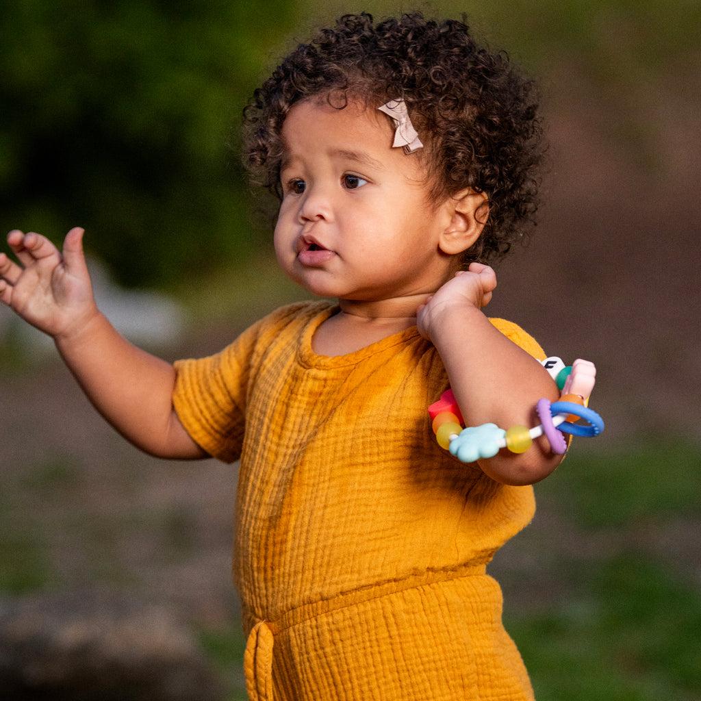 - Linkable design clips onto strollers or bags for teething comfort on the go