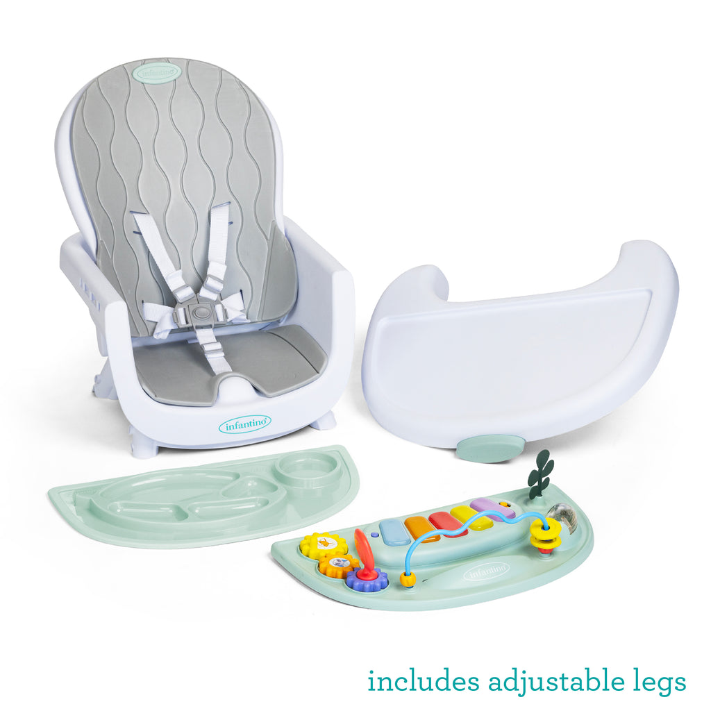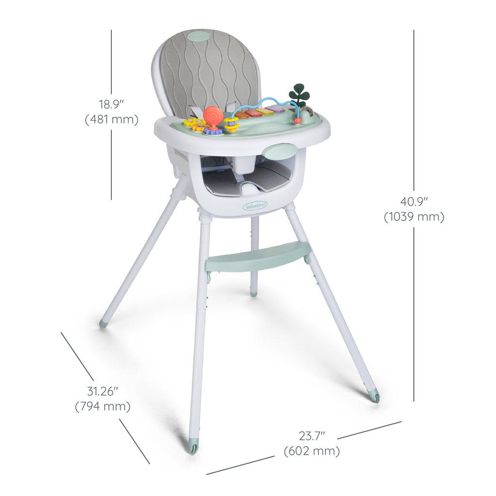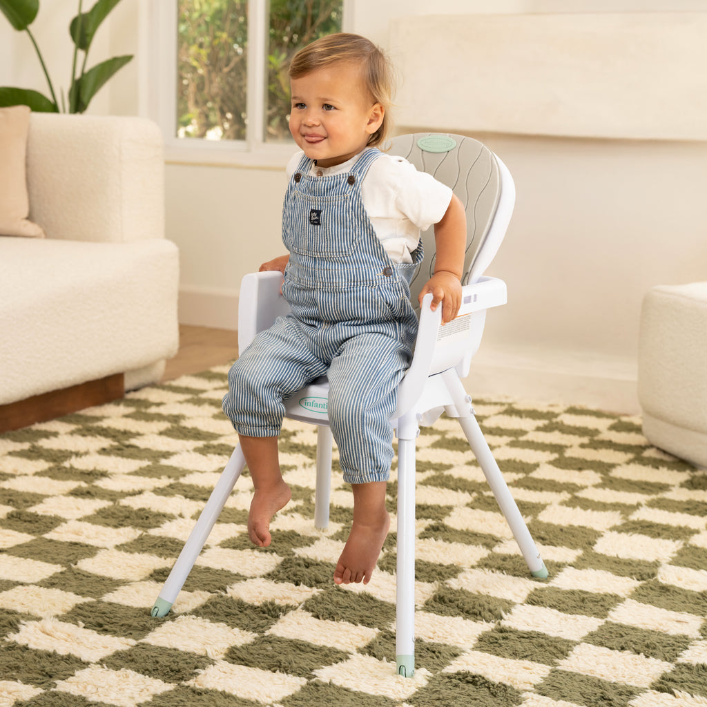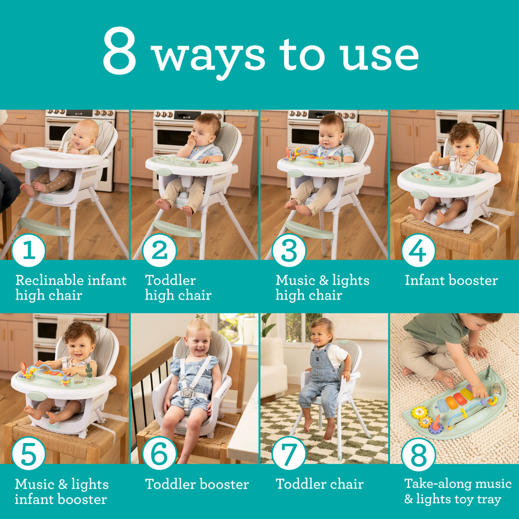 - 8-in-1 design transitions from a baby high chair to a toddler chair