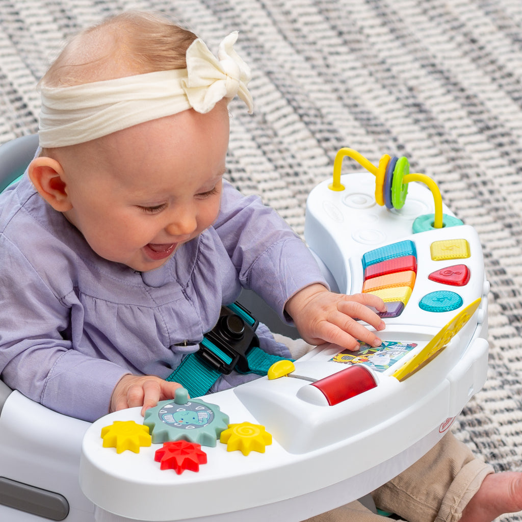 - 3-in-1: Interactive play space, snack seat, and table booster