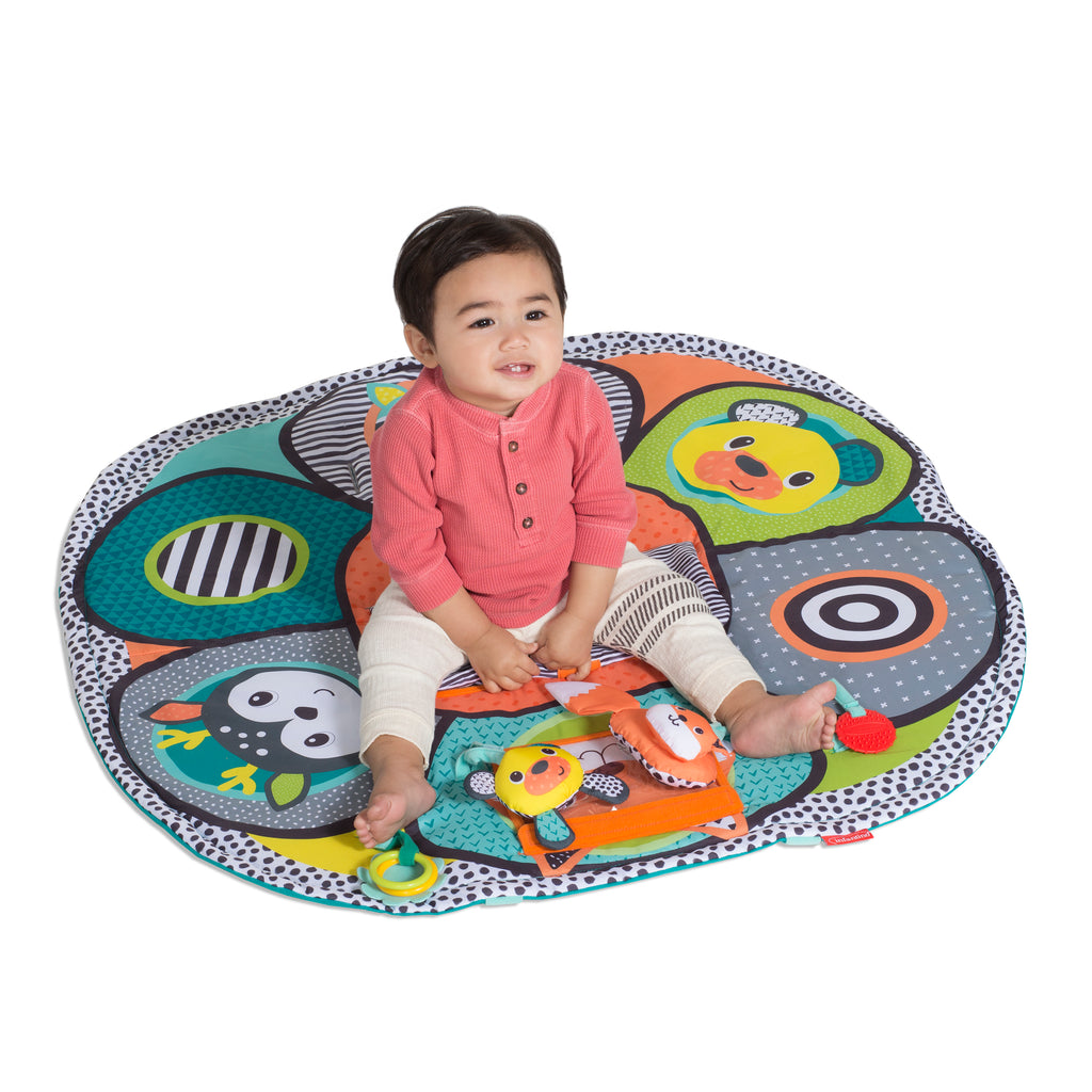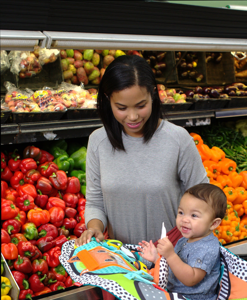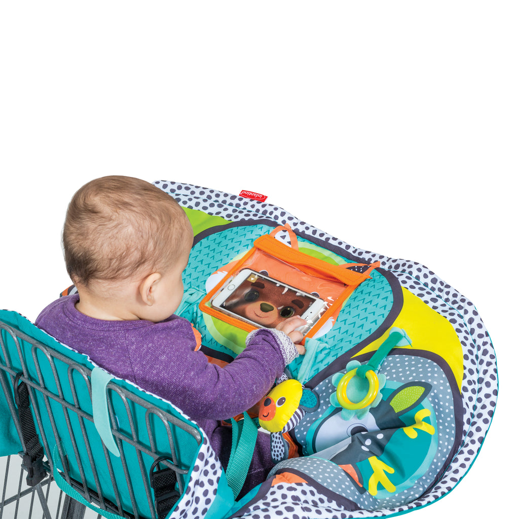 With four fun toys and a versatile design, the Play & Away can turn almost any space into a play zone – your shopping cart, a high chair, or grandma's living room floor! This cover is extra wide for more germ coverage and protection. Plus, plush padding provides extra comfort. Remove the safety harness and lay flat to create a clean play mat for home, family visits, the park and more.