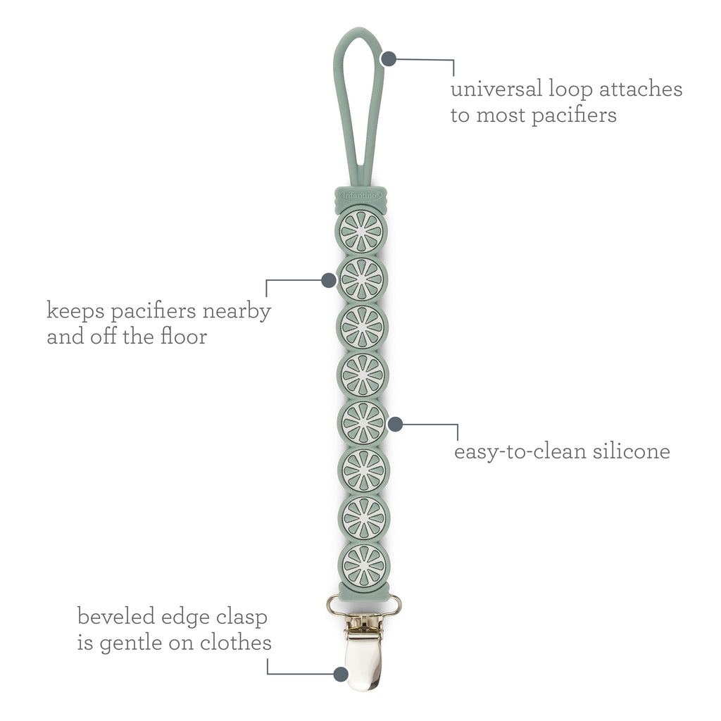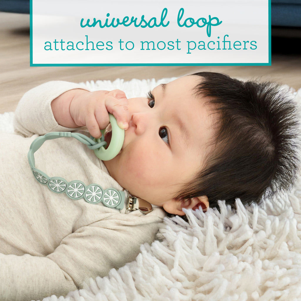 - Universal loop fits most pacifiers and can be used as grows with baby