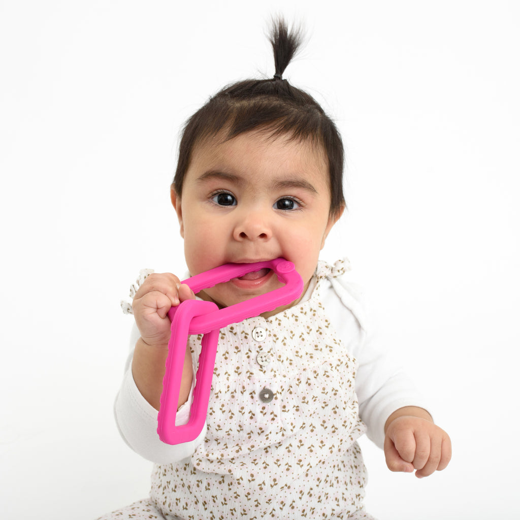 Two interlocked links for the baby to grasp, shake, chew, and pull