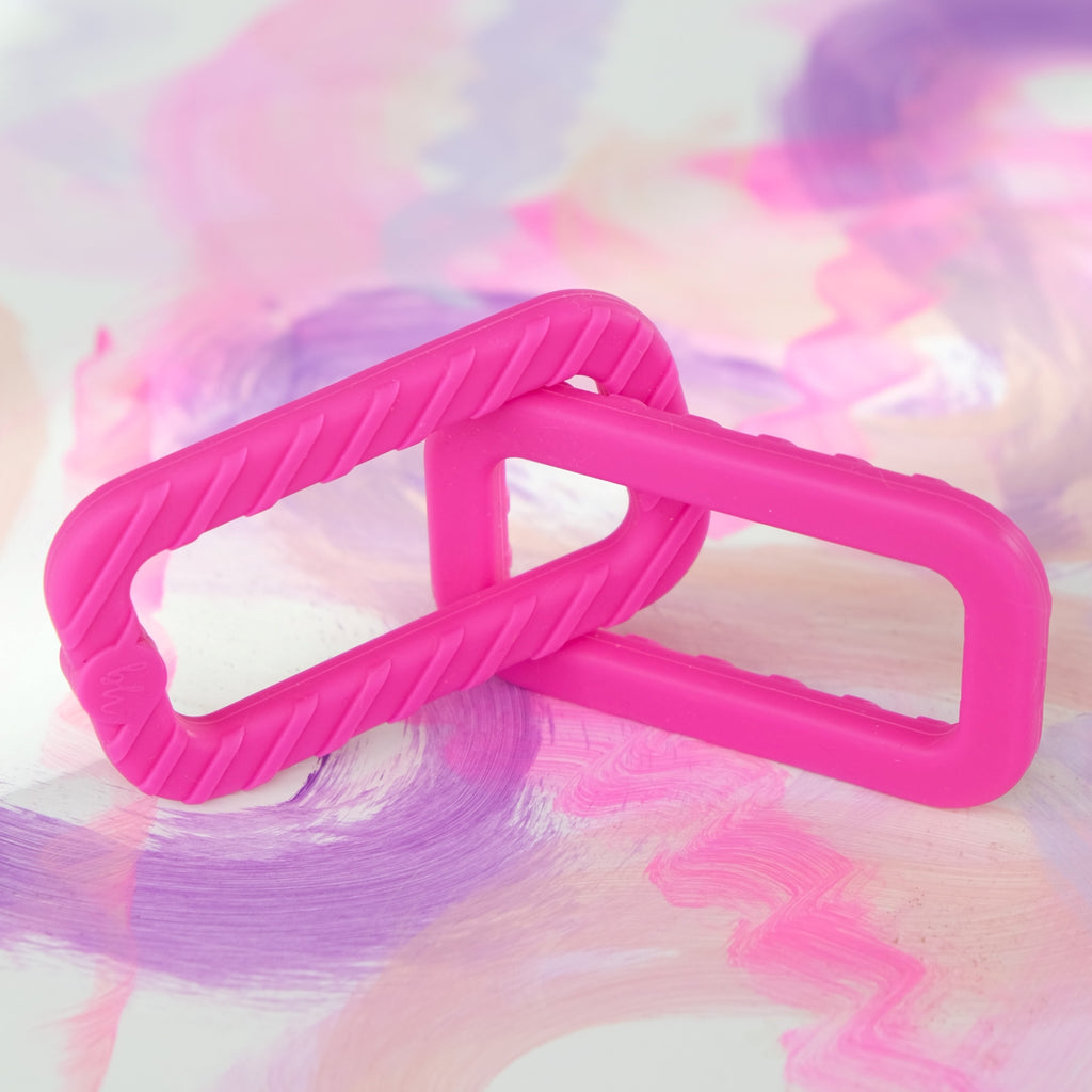 Based on the super-hot trend of chunky chain and metal jewelry, The Silicone Chain Link Teething Rings are minimalist, elegant, effective, long-lasting, and easy to sanitize. Connected links move freely and cannot be detached for a safe, CPSC compliant teether that can easily reach those painful back molars. We’re making statement pieces out of baby teethers, at super affordable prices accessible to any family.