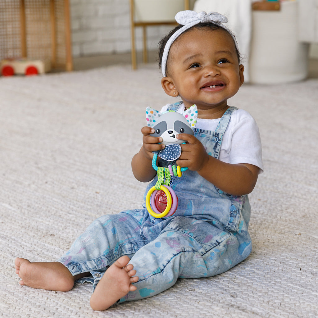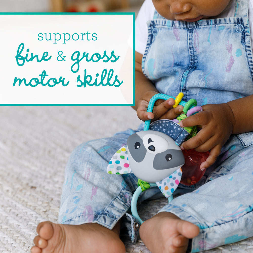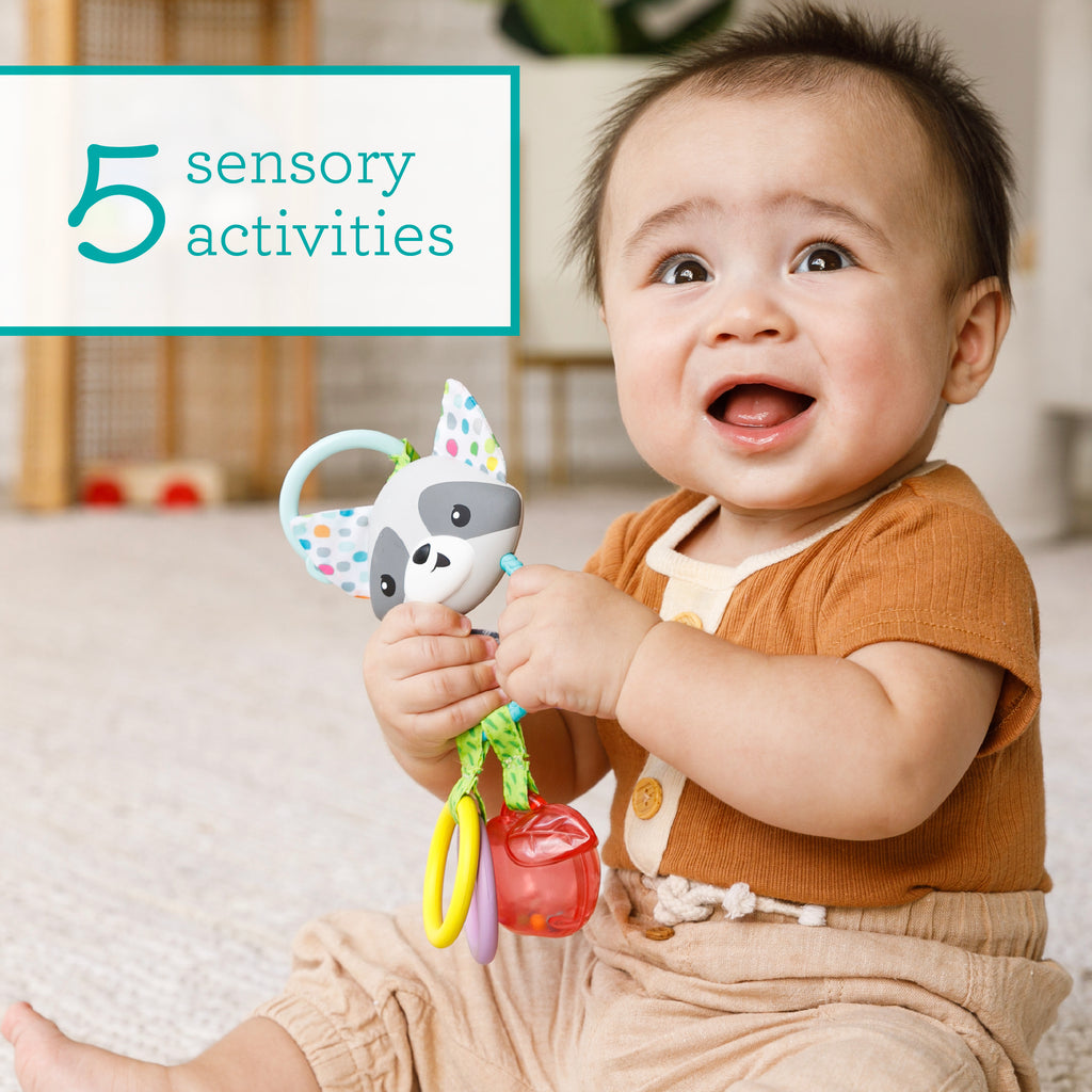 - Slip-sliding beads and click-clacking rings provide sensory feedback
