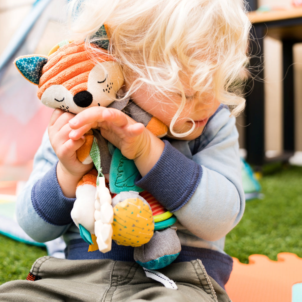 Babies will go gaga for this Playtime Pal and it's multi-sensory features. This baby toy will make use of all their senses, with bright colors, multiple different textures and rattling noises. This soft toy is the perfect size for baby to cuddle with, and also easily hangs from their car seat or stroller to keep them occupied.