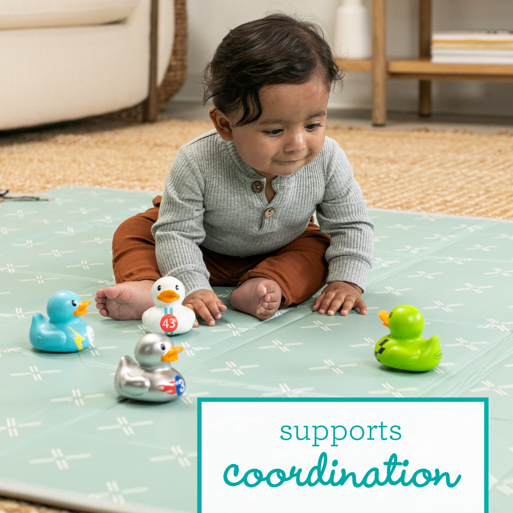 - Stimulate your baby's curiosity with thrilling, sporty designs