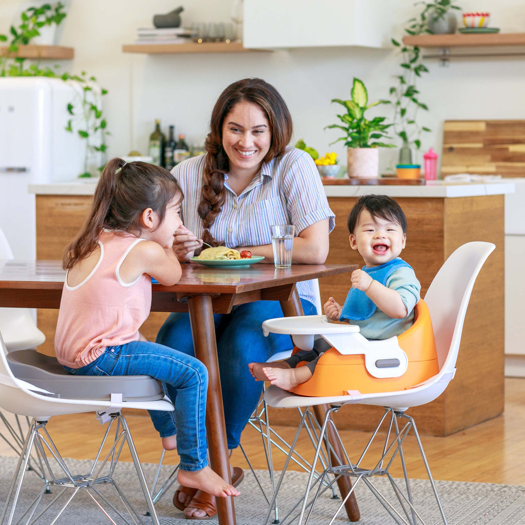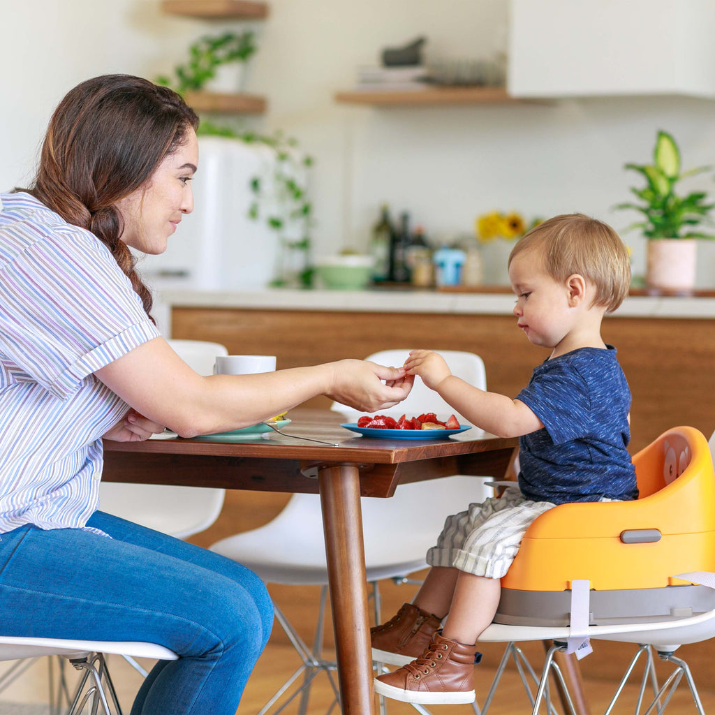 - Safety securing straps easily attach to most dining chairs