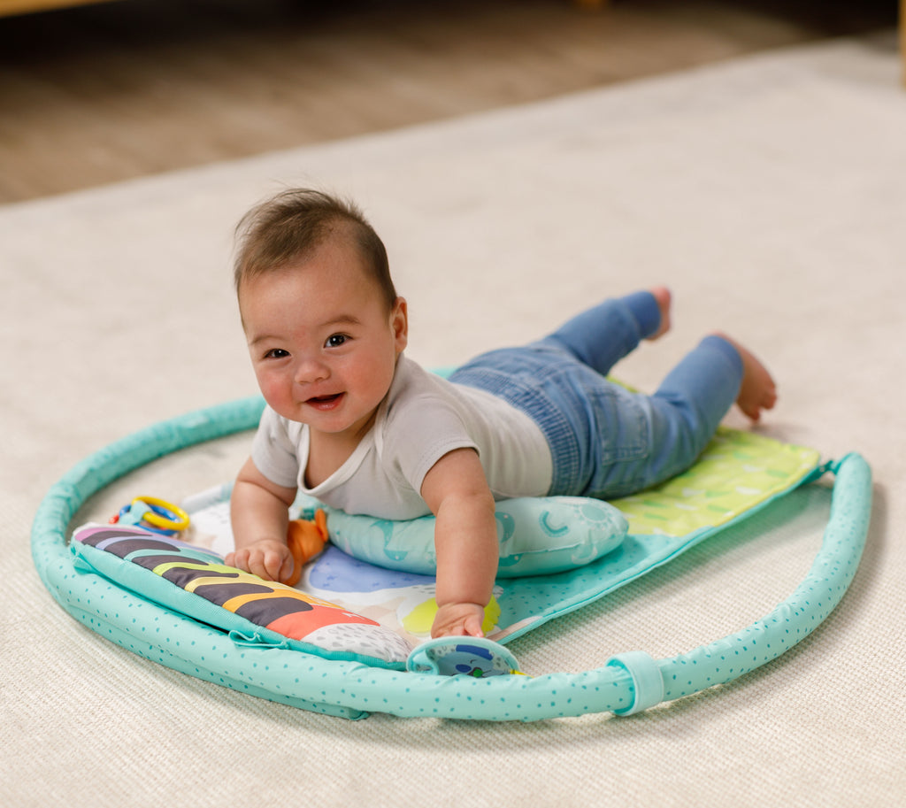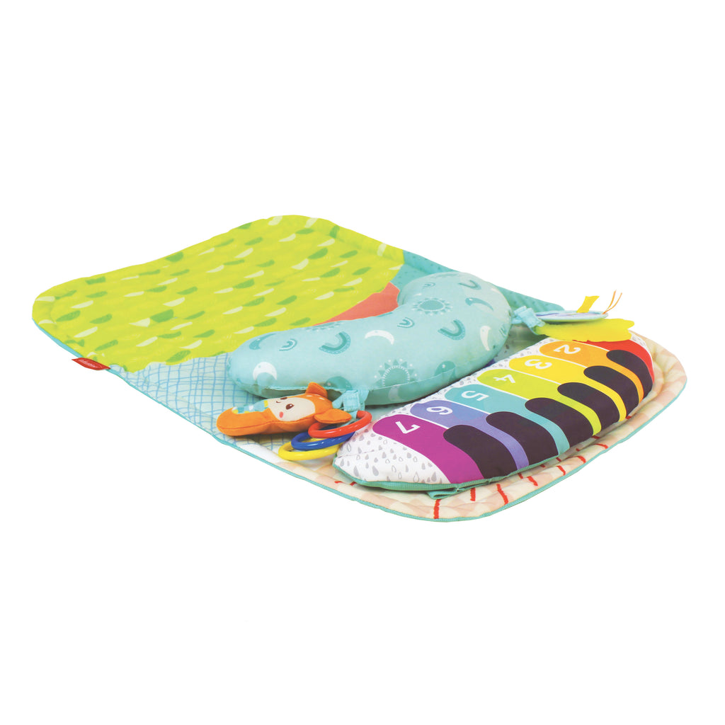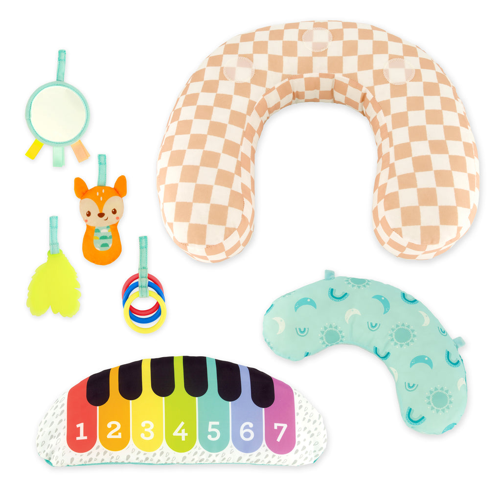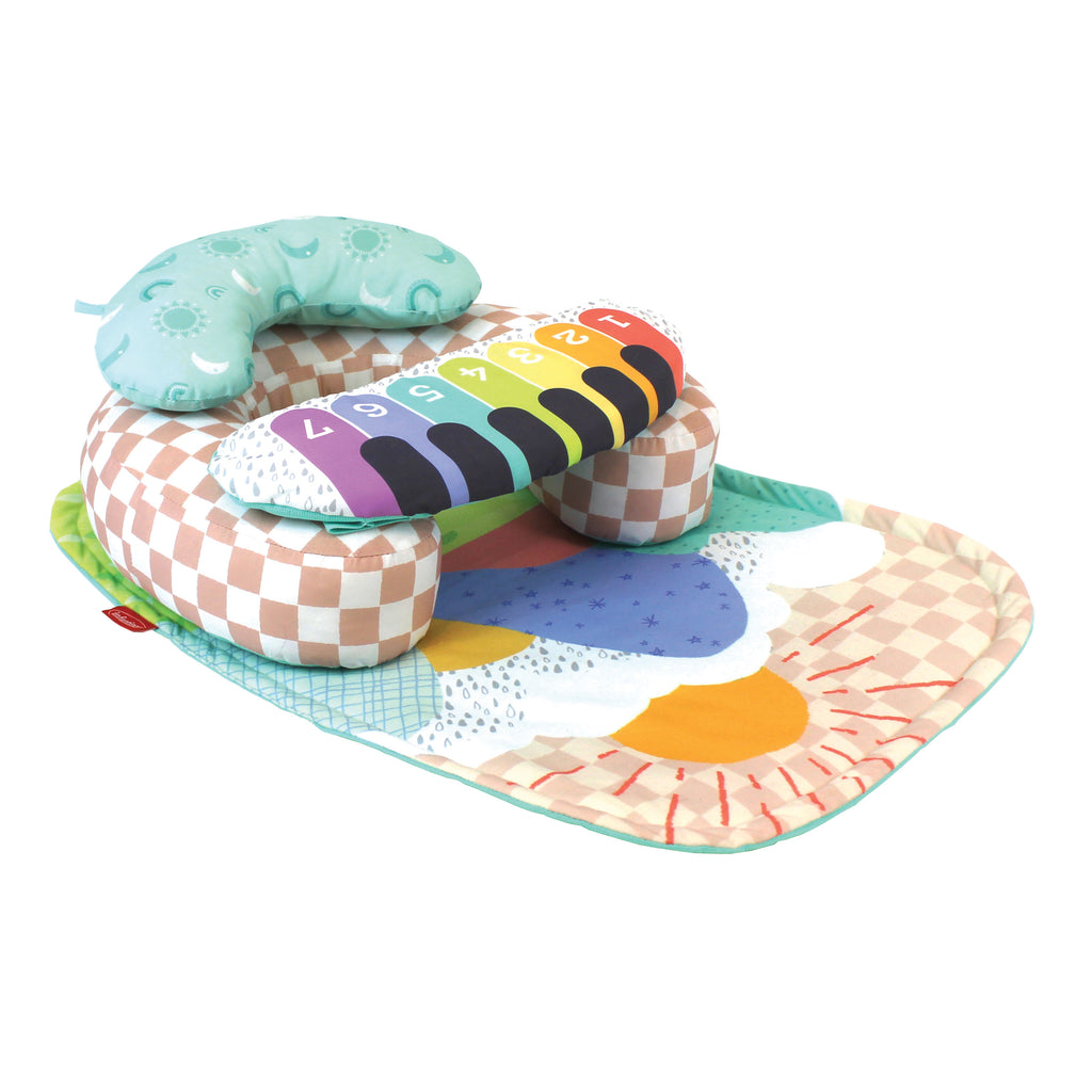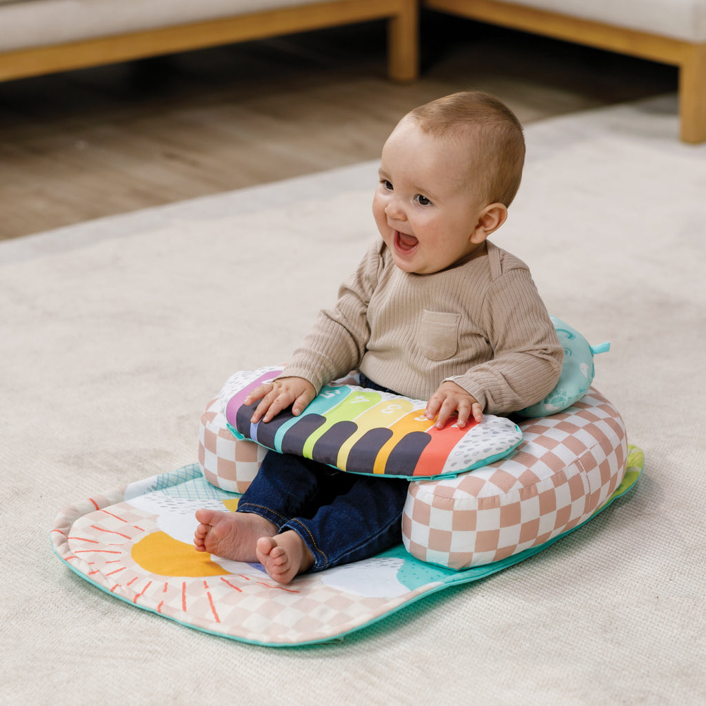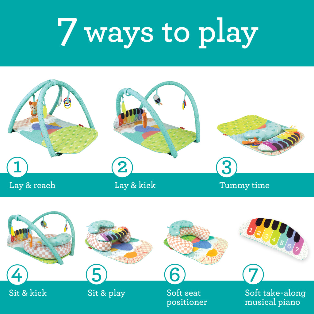 Discover the ultimate baby product that combines all the essentials: an activity gym, playmat, seat positioner, tummy-time bolster, hanging toys, and a take-along piano