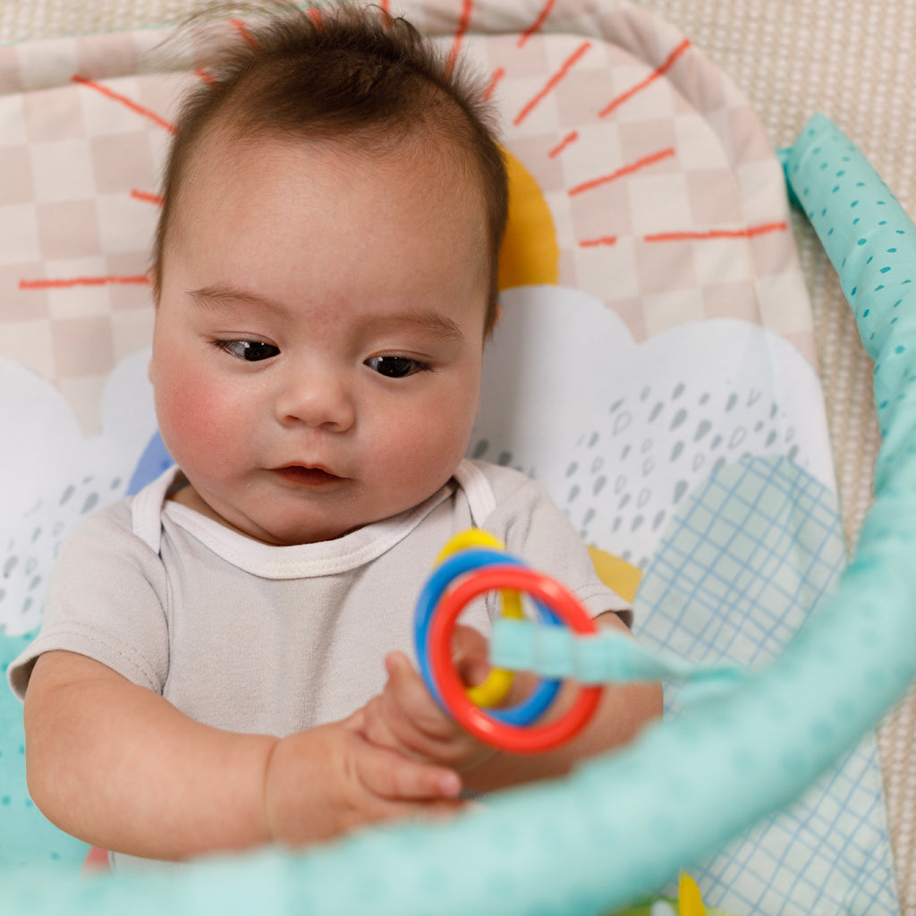 Supports developmental skills through play, including sensory exploration, hand-eye coordination, and cognitive thinking