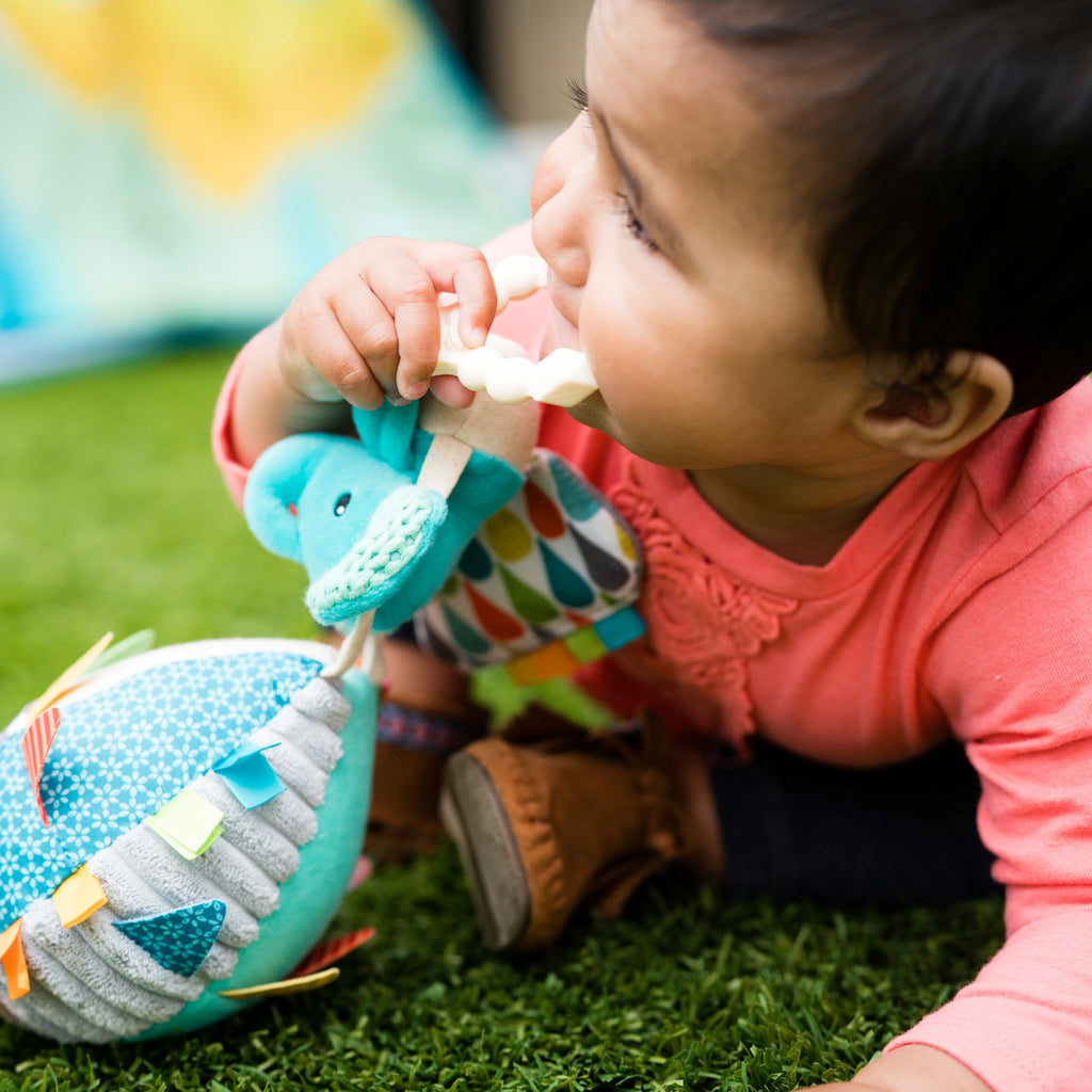 - Includes BPA free silicone ring teether